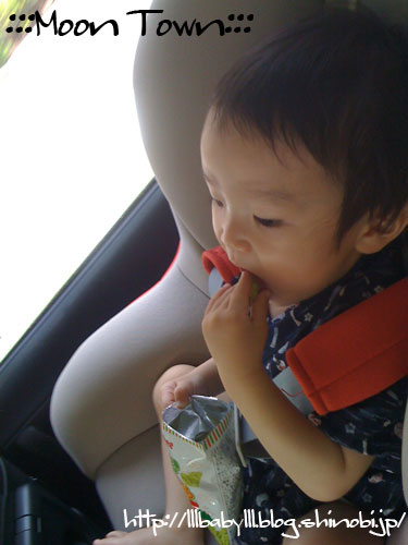 袋からお菓子をつまんで、お口にポイッ!
